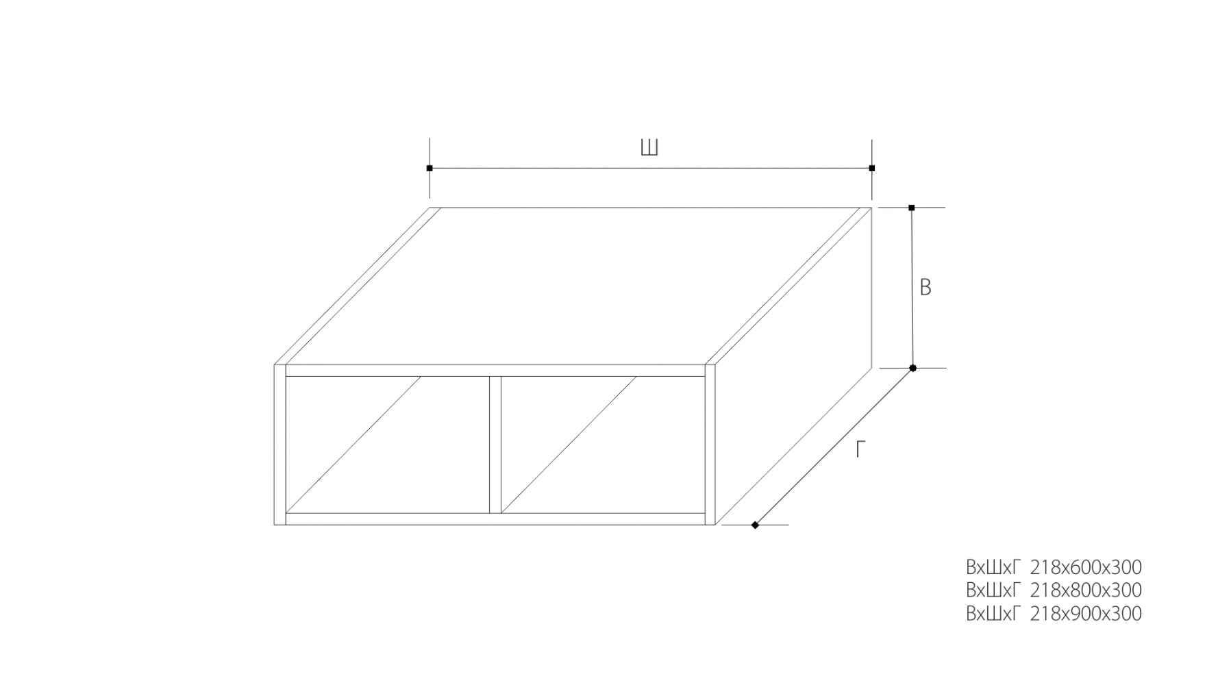 ВхШхГ: 218х900х300 мм.